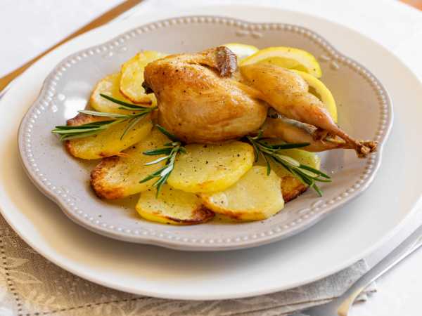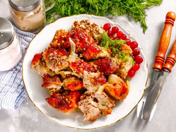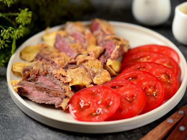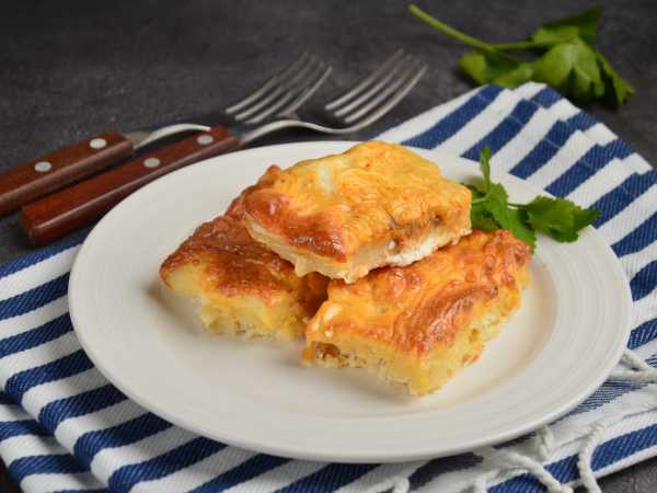 Картофель нарезайте не слишком крупно, а мясные заготовки отбейте — тогда и твердые корнеплоды успеют пропариться, и говяжьи отбивные выйдут сочными, мягкими. Советую, уложив овощи с мясом в форму, заливать горячим, можно только-только закипевшим молоком — времени в духовке потребуется меньше.