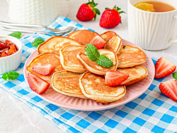Тонкие блины для основы блюда можно приготовить заранее по любому из рецептов на сайте - создавайте сладкие блинчики, не кружевные, чтобы начинка не вытекла. Духовку разогревайте заранее и следите за краями блинов, выпекая их.