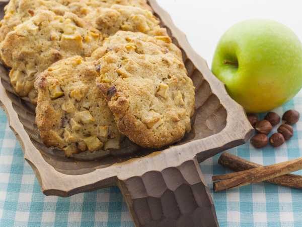 Готовый пирог достаем из духовки. Из остатков теста я испекла несколько печенюшек в виде листочков и украсила ими пирог. Даем пирогу остыть.