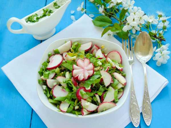 Готовый салат из авокадо, яиц и редиса раскладываем по тарелкам, украшаем нарезанным миндалем и угощаем своих домашних или гостей. Приятного аппетита!