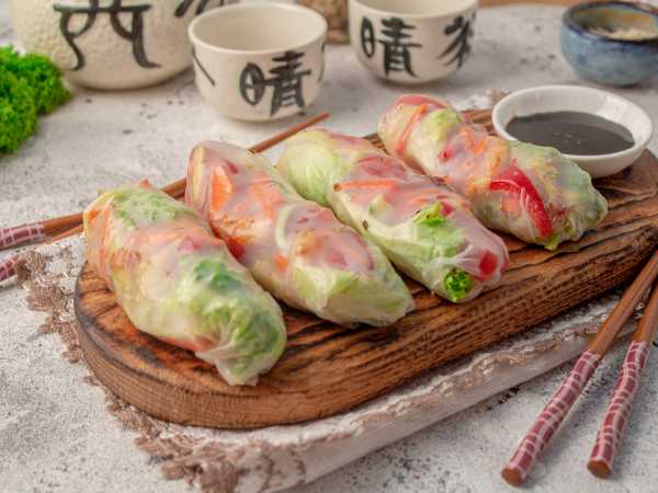 Известная закуска вьетнамской кухни - спринг-роллы. Принцип их приготовления прост: в рисовую бумагу заворачивают разнообразные начинки и подают с соусами.