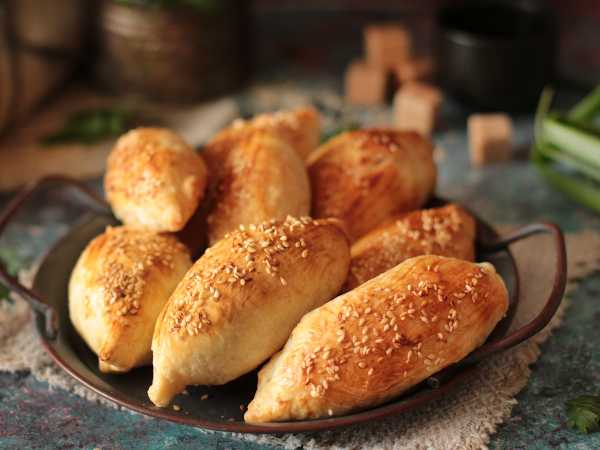 Выложите пирожки на противень с пергаментом.