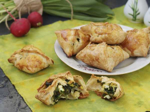 Интернет вдохновляет попробовать что-то новое. Сегодня рекомендую приготовить ленивые закусочные пирожки без замеса, нужно всего лишь купить готовое дрожжевое слоеное тесто. Можно даже не формировать пирожки, начинку выложить просто сверху и запечь в духовке. Но мне захотелось сделать что-то типа расстегаев с румяной сырной корочкой. Получился безумно вкусный результат, приятный вкус, мягчайшее тесто.