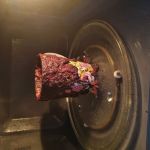 Порубите шоколад, добавьте его в кружку и перемешайте. Готовьте брауни в кружке в микроволновке на самой высокой мощности 3 минуты.