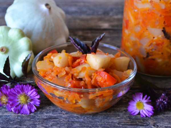 Лечо из патиссонов на зиму готово.