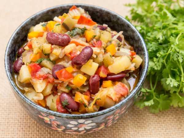 Подавать стручковую фасоль с помидорами можно как в горячем, так и в охлажденном виде.