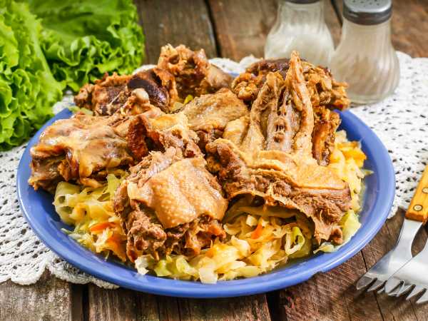 Тушеная капуста с курицей и фасолью готова.
