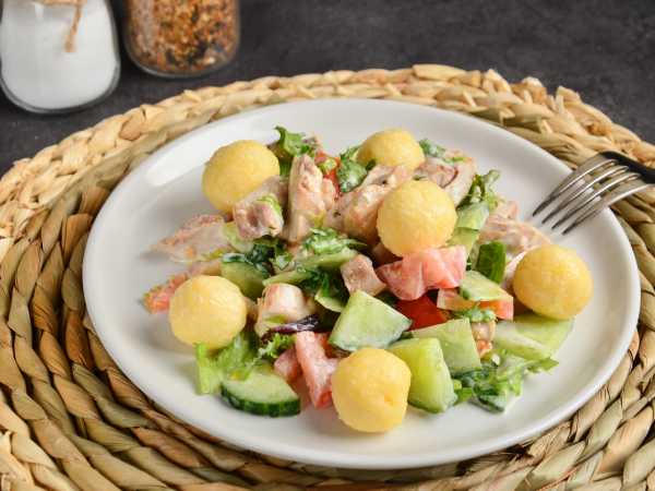 Салат с фасолью, курицей, яйцами и огурцом, рецепт с фото