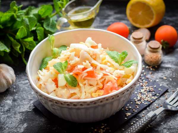 Если хранить салат в холодильнике в закрытой ёмкости, то его можно употреблять и на следующий день - ещё и вкуснее станет.
