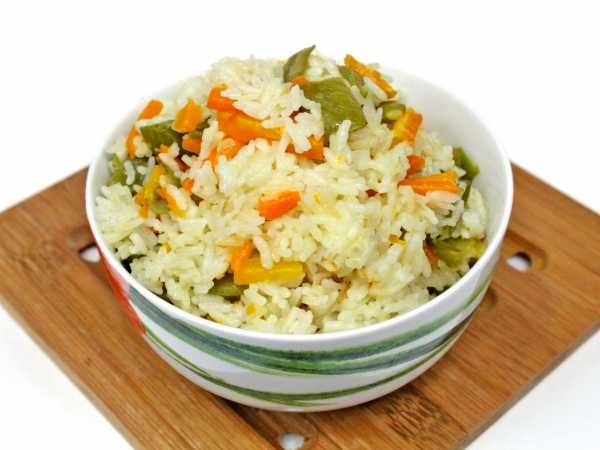 Обжаривайте овощи минут 5, после чего переложите в сковороду сваренный почти до полной готовности рис.