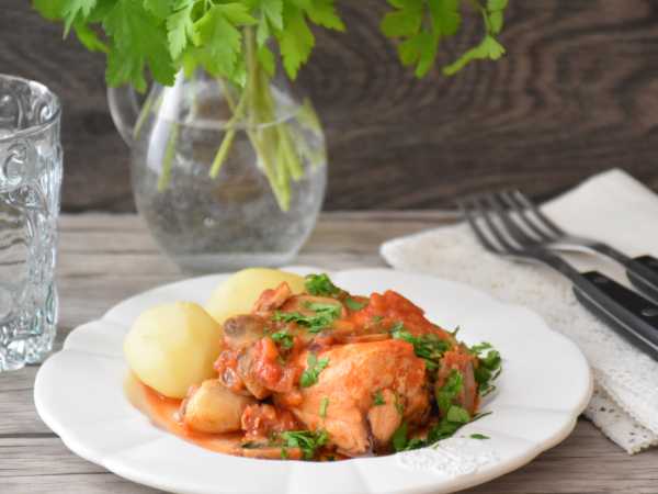 Влейте 100 мл куриного или овощного бульона, добавьте молотый шафран (или лепестки), сушеный тимьян. Перемешайте и томите под крышкой минут 5-7.