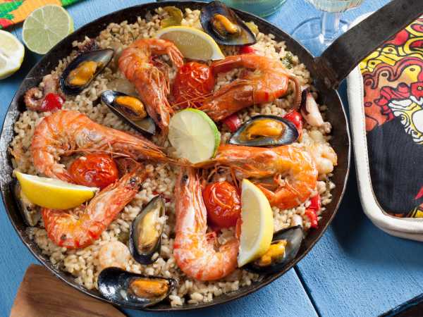 Аккуратно разложите паэлью по порциям, посыпьте свежей зеленью и подавайте сразу же после приготовления.