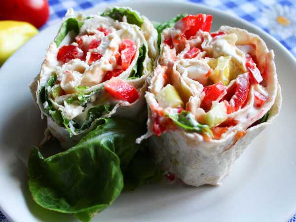 Накрыть вторым листом лаваша, смазать его остатком начинки и плотно скрутить в рулет.