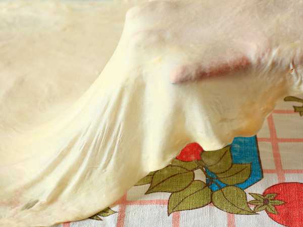 Чтобы скалка не прилипала к этому творожному тесту, его нужно посыпать рисовой или кукурузной мукой, но наверное. Я посыпала лишковато... Раскатайте тесто в тонкий пласт толщиной 5-7 мм.