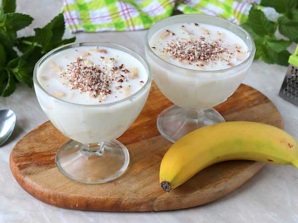 На удивление консистенция и вкус у этого десерта не совсем как у желе. Получается очень нежный и кремовый мусс. Банан обязательно берите спелый, потому что он гораздо слаще. По своему желанию можете еще добавить сахар или сахарозаменитель.