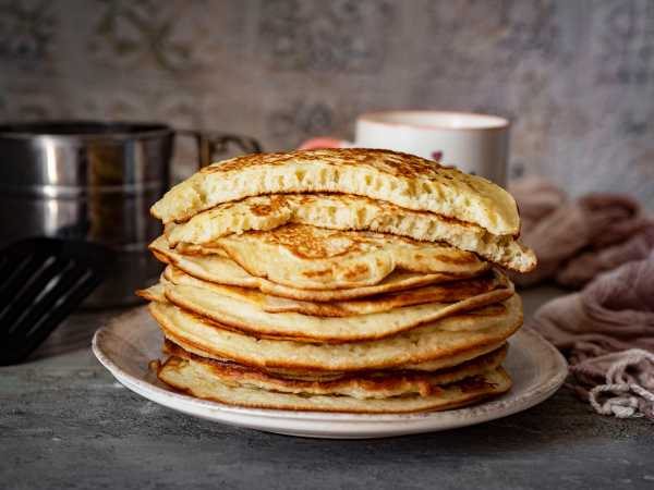 Жарить блины на проверенной сковородке, смазав ее растительным маслом и предварительно хорошо прогрев на огне. У меня есть специальная железная сковородка для блинов, к ней ничего не липнет и первый блин не получается комом)). Переворачивать блины по мере поджаривания, а затем складывать стопочкой.Огонь должен быть меньше среднего, чтобы внутри блины не оказались резиновыми, а оставались пышными.
