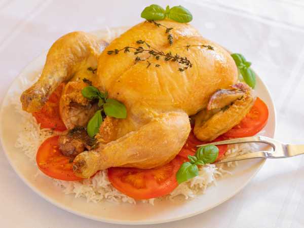 Подготовьте все необходимые продукты по списку. Идеальной для запекания считается тушка до 1,5 кг весом. Курицу помойте под проточной водой, обрежьте лишний жир в брюшке.