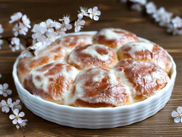 Выложите рогалики на противень, застеленный пергаментной бумагой. Выпекайте в разогретой до 180 градусов духовке 30 минут.