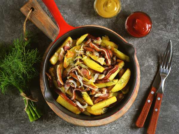 За это время шпинат существенно уменьшится в размерах. Очистите чесночные зубчики, промойте их и нарежьте мелкими кубиками или спрессуйте через специальный девайс прямо в сковороду. Аккуратно все перемешайте и посолите. Протомите еще 1-2 минуты, чтобы чеснок раскрыл свой аромат.