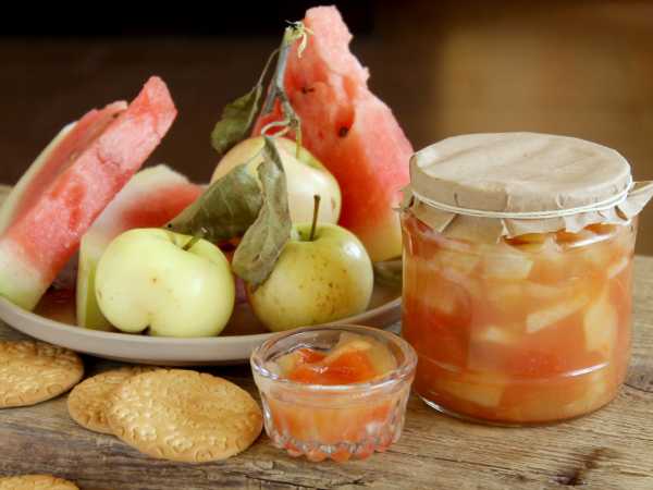 Если вы хотите сделать заготовку на более длительное время, то арбузные корки следует сложить в банку, залить маринадом и поставить стерилизовать на 15 минут. Затем банку закатать и перевернуть.