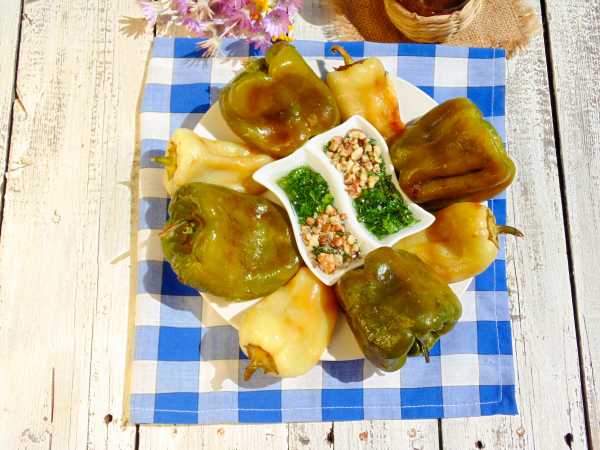 Перцы тщательно вымойте под холодной водой и просушите бумажным полотенцем. Целыми выложите на сухой противень.