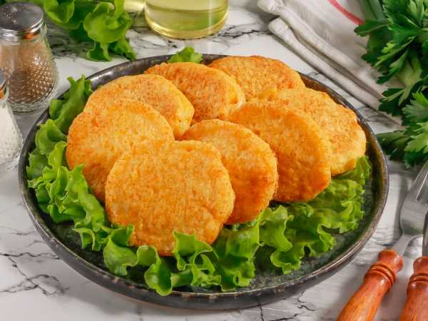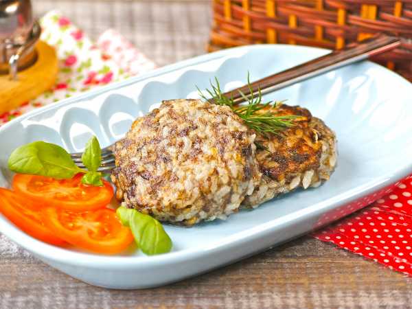 Котлеты из рисовой каши готовы. Подаём к столу в горячем или тёплом виде с любимым соусом. Можно подавать котлеты в качестве гарнира к рыбе или мясу, либо же использовать как самостоятельное блюдо и подавать со свежими овощами и зеленью.