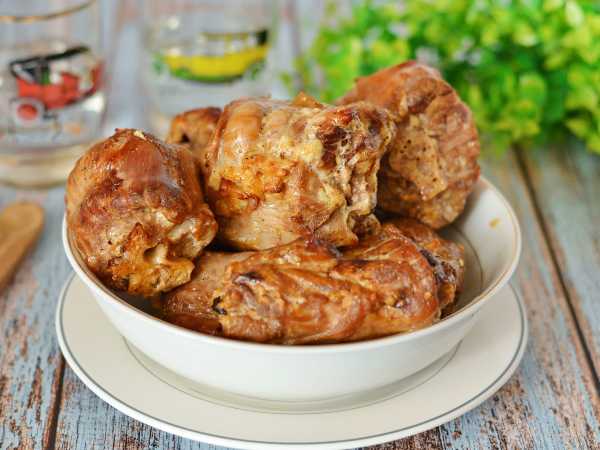 Окутайте голень фольгой со всех сторон. Загрузите индейку с яблоками и черносливом в разогретую духовку, запекайте 1,5 часа. За 15 минут до конца процесса раскройте фольгу, чтобы индейка приобрела румяную корочку.