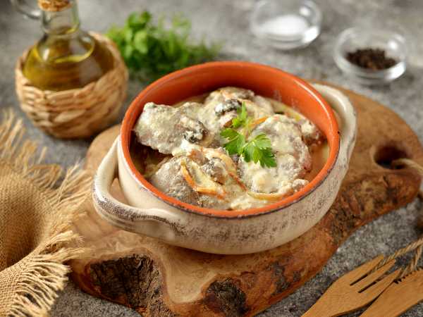 В форму для запекания вылить маринад, выложить кружочки апельсина.