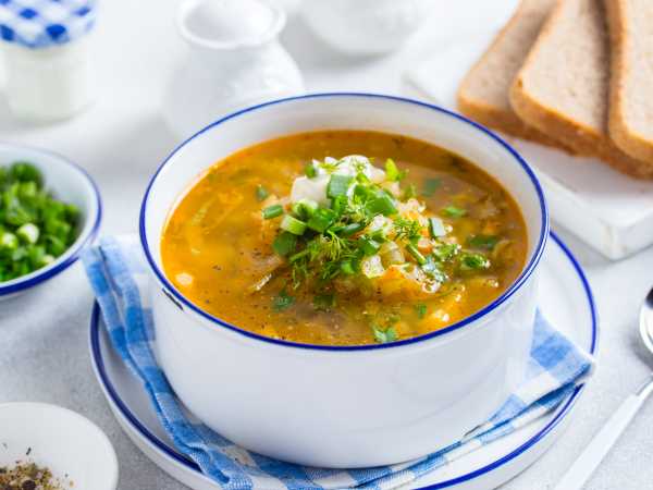 К столу пшенный кулеш с ребрышками и копченой грудинкой подавайте на первое во время обеда с черным хлебом (который можно натереть чесноком).