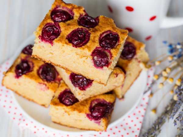 Если тёртый пирог с творогом и вишней разрезать в остывшем виде, то срез получится более красивым и гладким. Я нарезала в горячем виде.