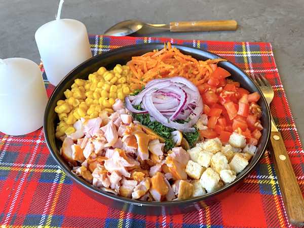 Накройте салат миской и отправьте в холод, чтобы он настоялся. Пары часов будет достаточно. А можно приготовить салат с вечера, чтобы подать его утром.