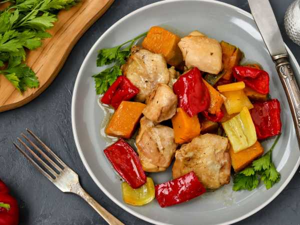 Вкусная, ароматная узбекская Гульчехра из курицы готова, подавать нужно в горячем виде с любым гарниром.