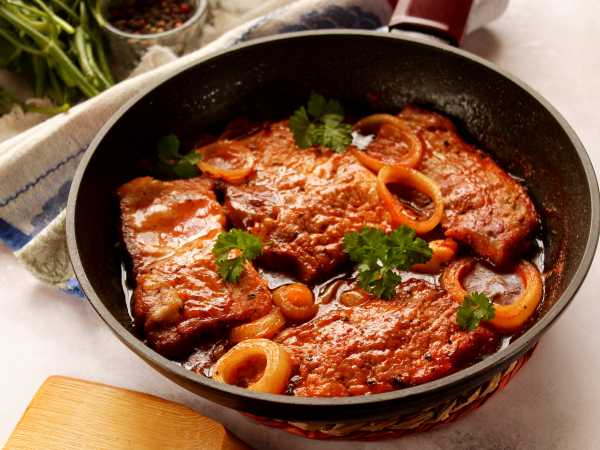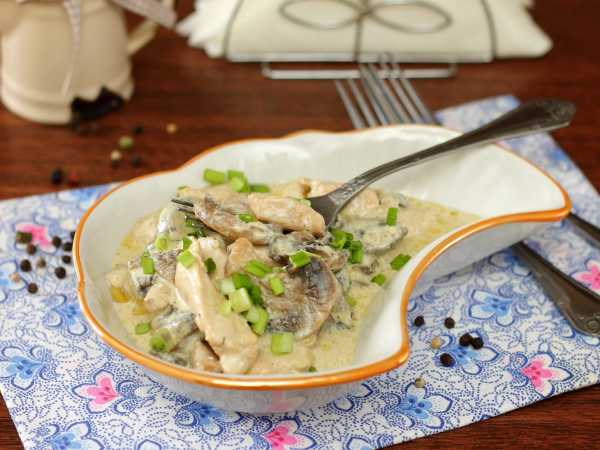 Залейте луково-молочной смесью курицу, накройте крышкой и томите около 25 минут.