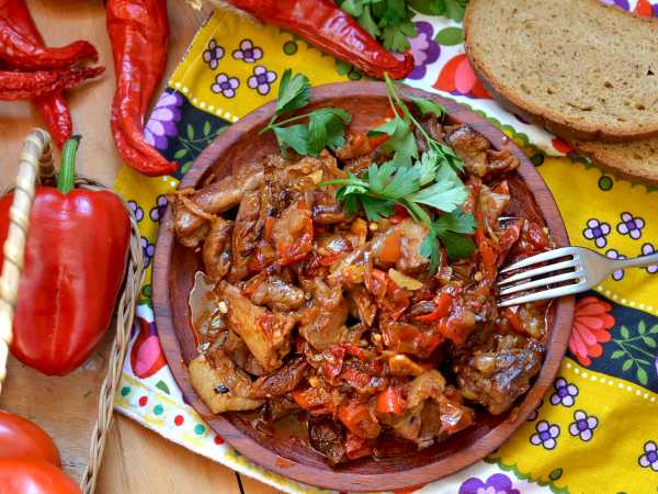 Когда картофель станет мягким - блюдо готово. Посыпьте его зеленью и подавайте. Можно подать в глубоких тарелках, так как подливы получается много.