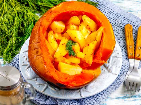Если не осилите тыкву в одиночку, разрежьте на несколько кусочков - так и подают блюдо к столу. Кашу накладывайте ложкой. По вкусу её можно дополнительно сдобрить сливочным маслом и мёдом. Приятного аппетита!