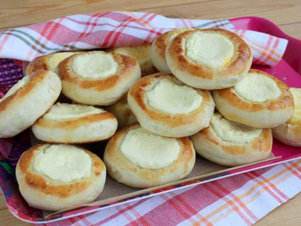 Каждый шарик расплющить в лепешку и выложить начинку. Можно сделать закрытые пирожки, тогда достаточно залепить пирожок , как вареник. Но в с творогом не рекомендуется печь закрытые пирожки, внутри может отделяться жидкость. Мы сделаем ватрушки, прорезав ножом маленькие щелки по краям теста.