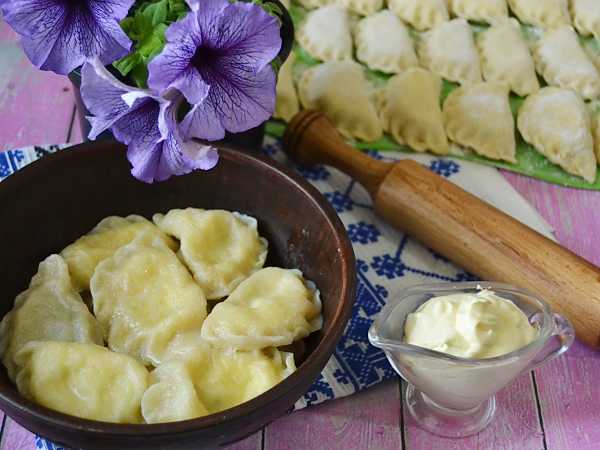 Готовые вареники смажьте сливочным маслом и подайте со сметаной сразу же, пока они горячие.