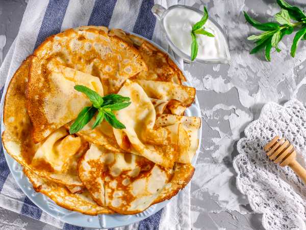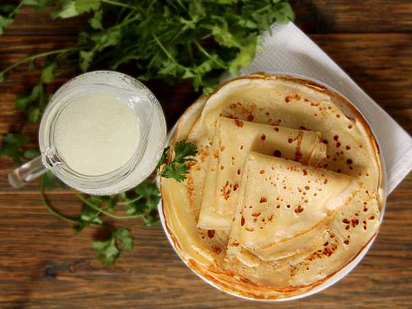 Я привыкла печь очень тонкие блины, а по этому рецепту получаются плотные блинчики – тесто слишком вязкое. Я разбавляла его понемногу, достигла желаемой консистенции, чтобы получались тонкие блины, но они прилипали и рвались, несмотря на смазанную маслом сковороду.