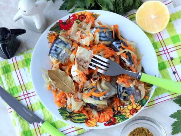 Ароматная, аппетитная запеченная в духовке скумбрия под майонезом готова.