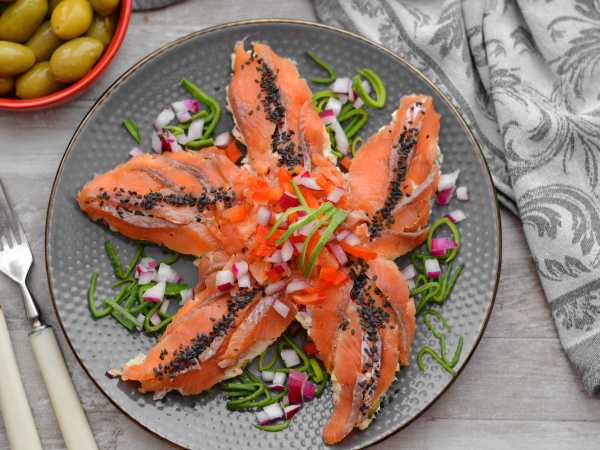 Авокадо нарежьте тонкими ломтиками, полейте лаймовым соком.