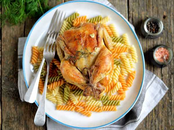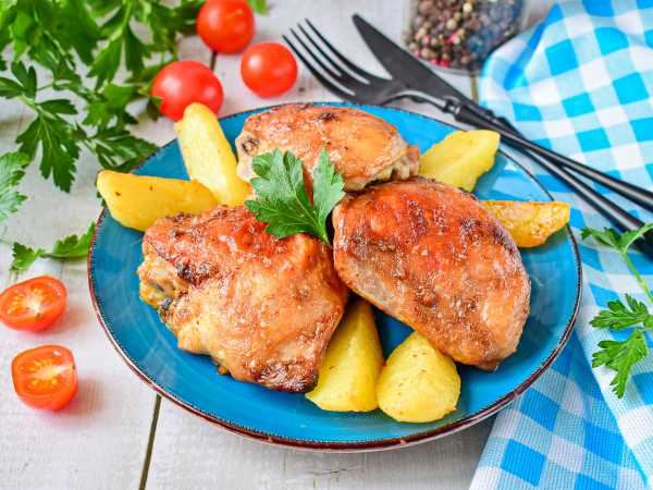 Запеченная курица готова. Подавайте с любимым гарниром и свежими овощами.
