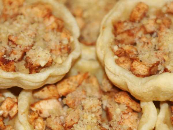 Наполните вафельные тарталетки крабовой начинкой. На каждую тарталетку уйдет 1,5-2 чайных ложки, чтобы сформировалась горка. Когда начинки много - будет вкуснее.