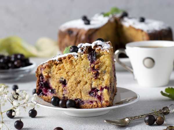 Шарлотка с черникой в мультиварке готова. Разрежьте её на порционные кусочки и подавайте на стол с чашечкой чая, молока или компота.