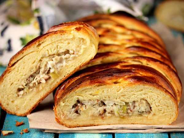 На присыпанной мукой рабочей поверхности раскатать тесто в пласт толщиной 1 см и при помощи формочки диаметром 9 см вырезать круги.