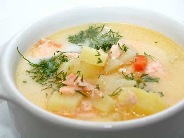 Как только картофель станет мягким, добавить филе рыбы, влить сливки и посолить по вкусу. Уху прокипятить в течение 5 минут.