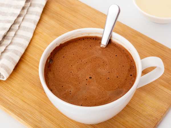 В банку или другую герметично закрывающуюся емкость отмерьте овсяное молоко. Добавьте какао-порошок и 1-2 ч.л. меда. Тщательно все перемешайте (можно закрыть банку крышкой и встряхнуть 20-30 секунд, до растворения какао).