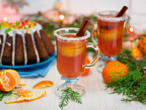 Кипятком ошпарьте апельсины и разрежьте каждый из них пополам. Из трех половинок фруктов выжмите сок, а одну оставьте для добавления в напиток.