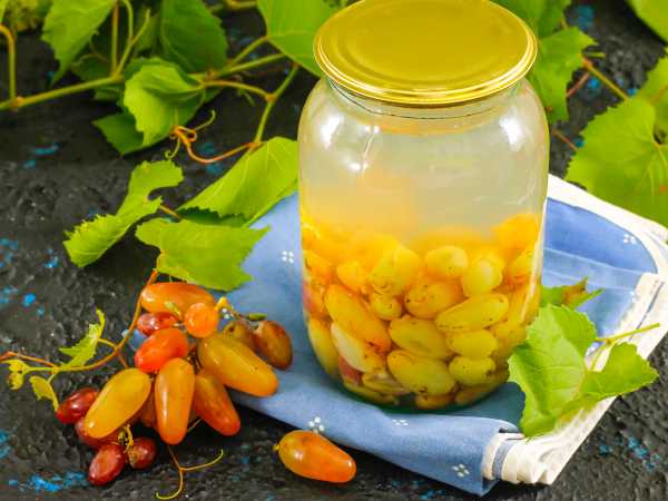 Всыпьте туда же промытый виноград, заполняя банку до плечиков.