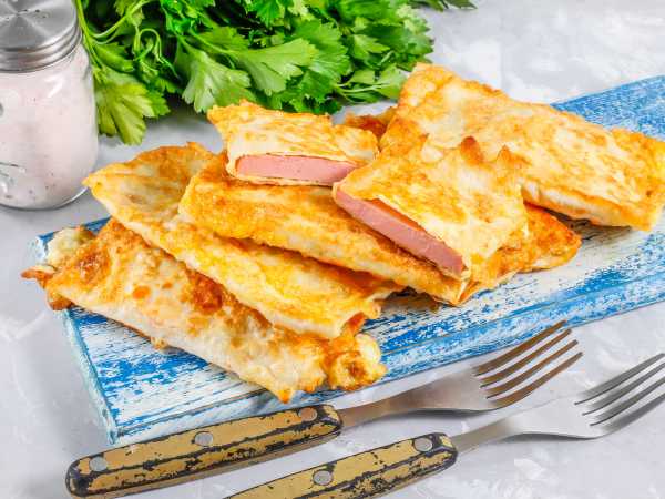 Разрежьте лаваш на длинные полосы, шириной около 8-10 см (как на фото).