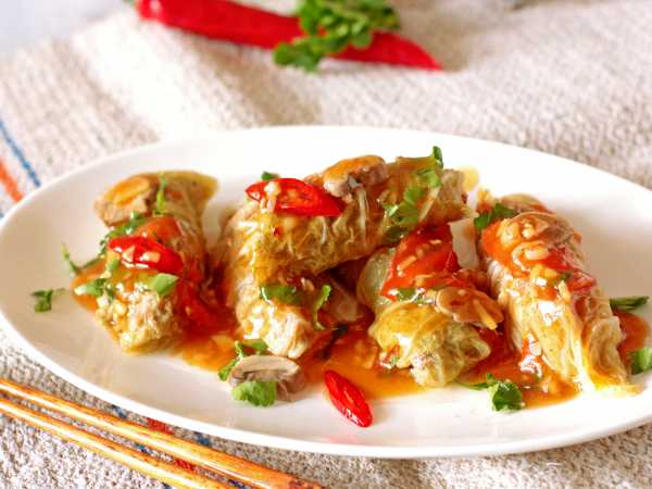 Ленивые голубцы с пекинской капустой готовы! Раскладываем их по тарелкам и подаём к столу.
